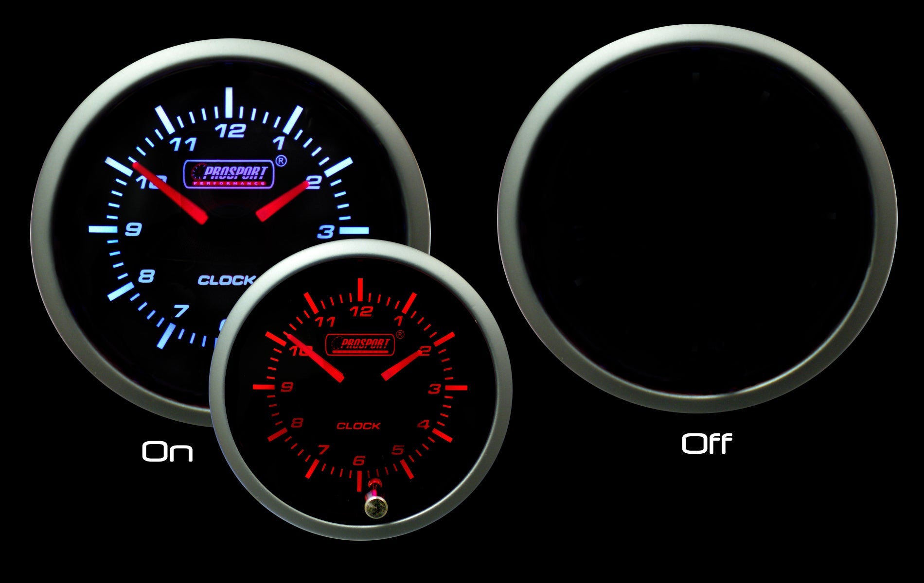 Blacked out when off. This 12 volt Premium series clock matches all the premium series gauges. Only 1.25" deep. Can be run White during the day and Amber at night or either color all the time, the choice is yours. Time set is all done from the front of the gauge.