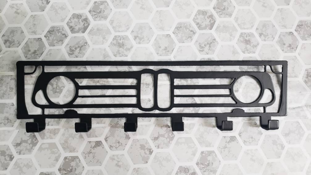 BMW fans will love this 2002 grill keychain rack. Precision cut from 14-gauge steel, it features six hooks and a classic Euro car look for your garage or entryway.