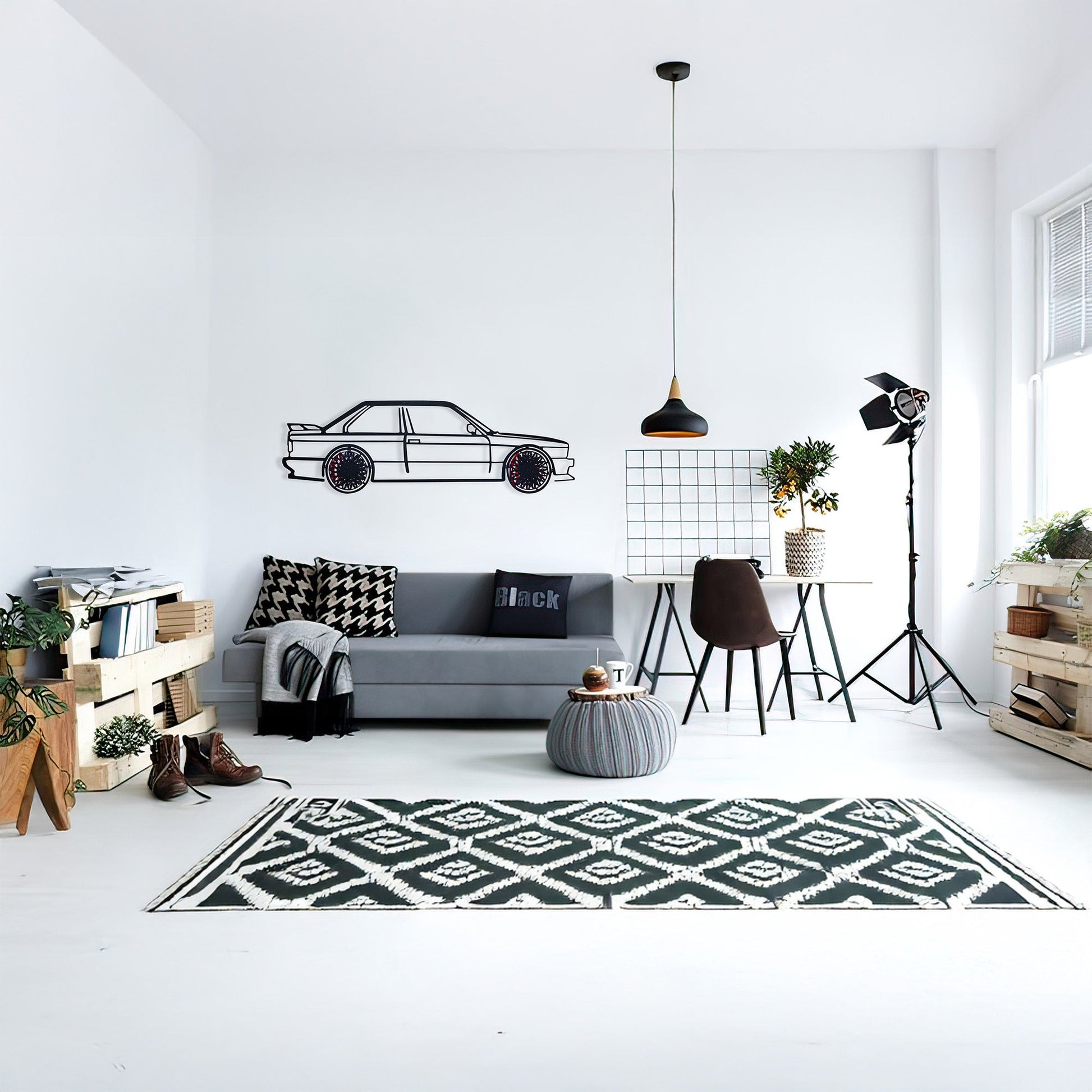 The BMW E30 M3 is a motorsport icon β a car that rewrote the rulebook for touring cars. Now, you can hang that racing heritage on your wall with this precision-cut steel silhouette wall art.