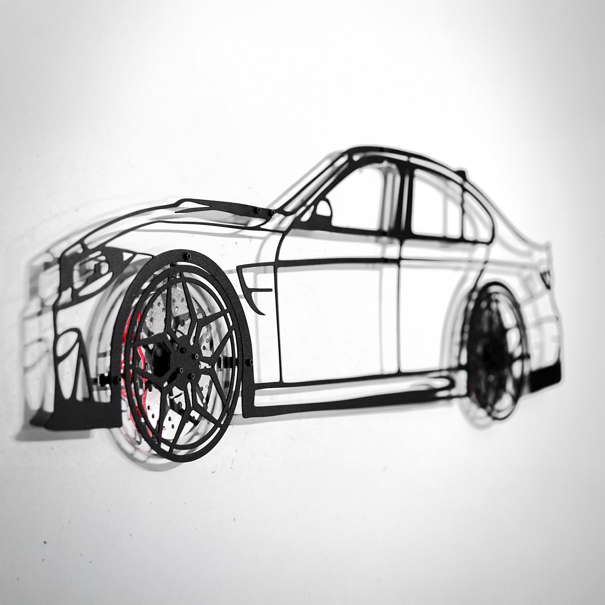 BMW M3 Wall Art – F80 Steel Silhouette with Spinning Wheels-KAFMEKA017