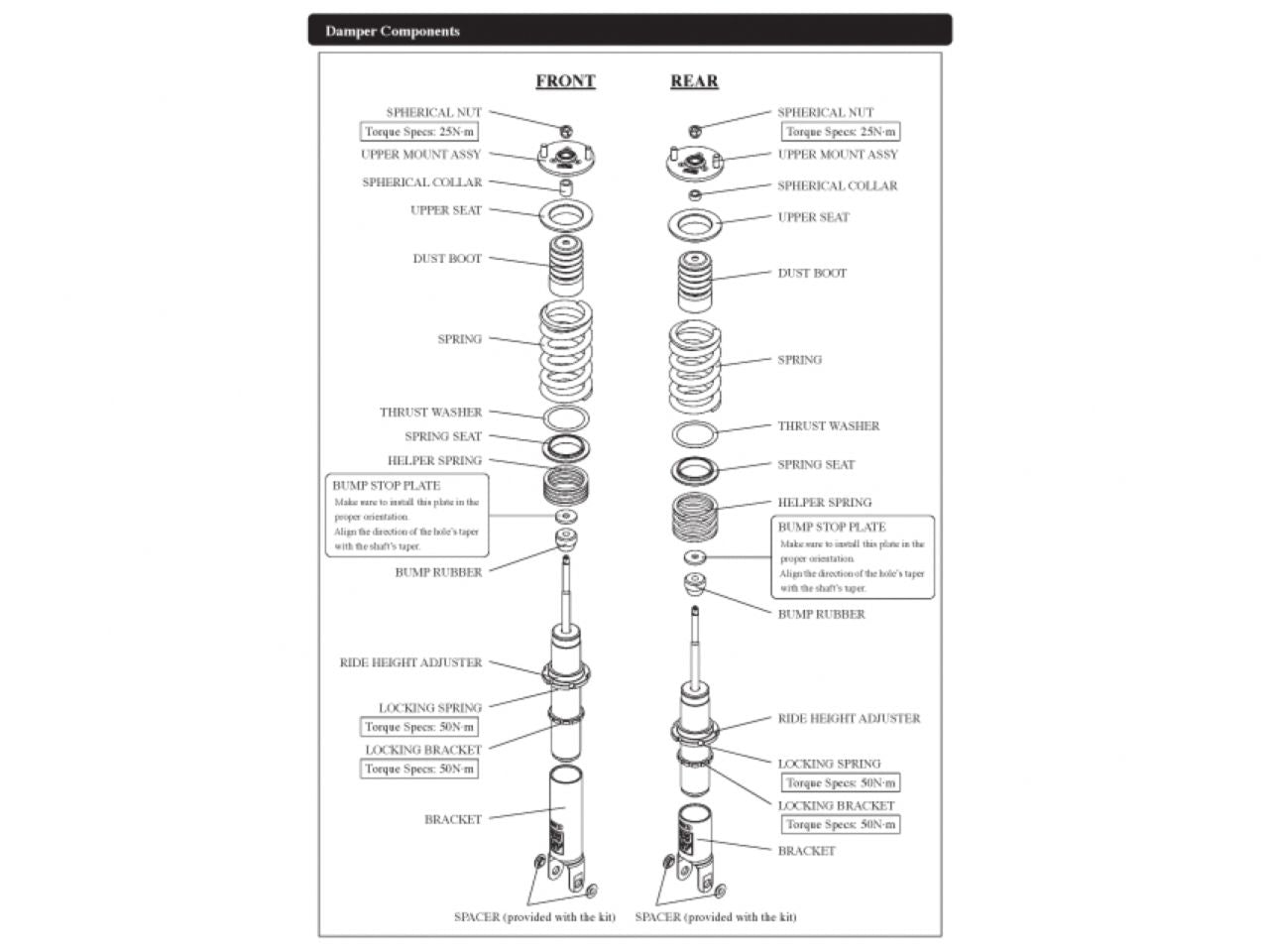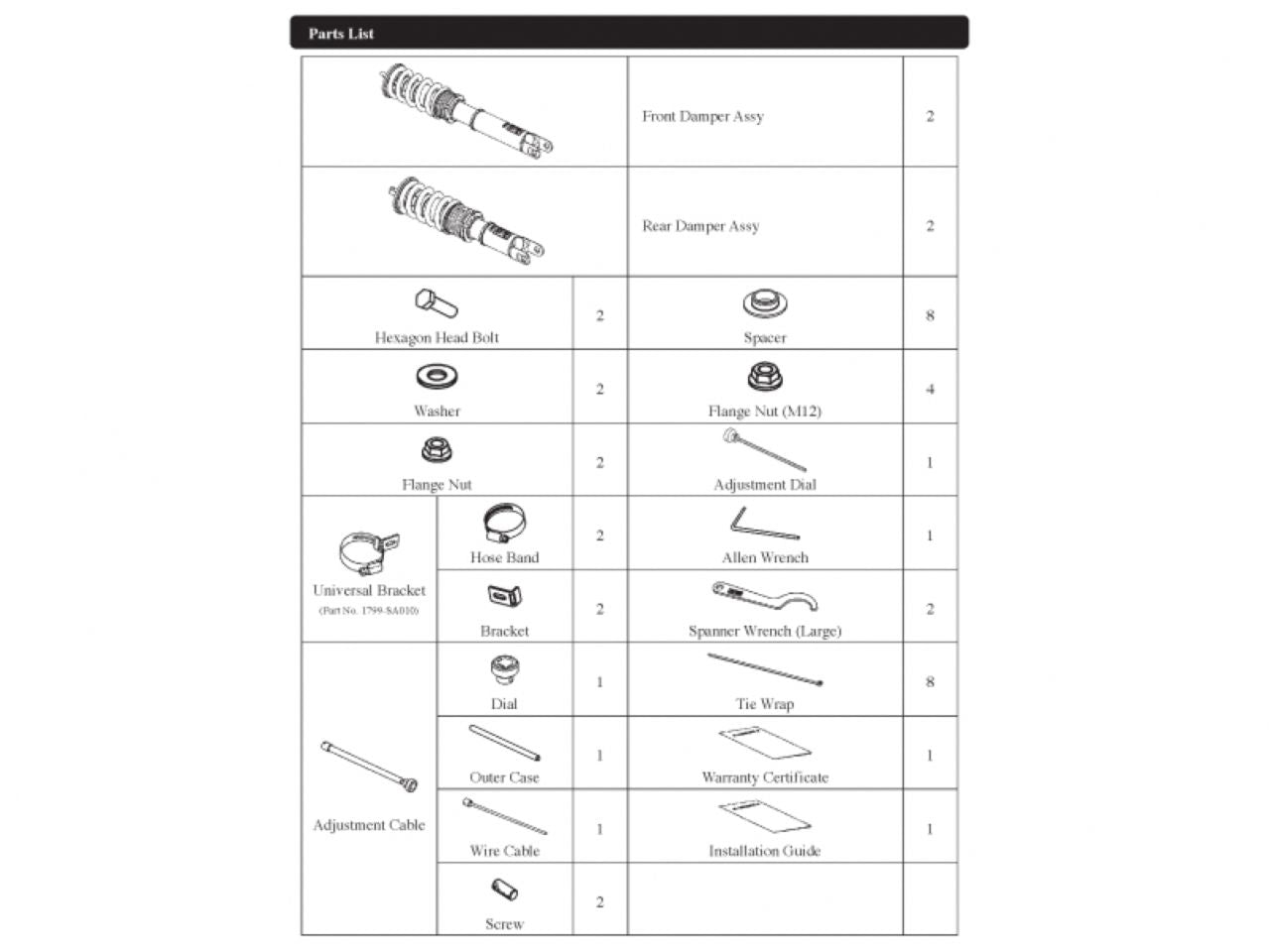 - In order to reduce unsprung weight, bracket, ride height adjusters and lock nuts are made from aluminium. (Not for all vehicles)