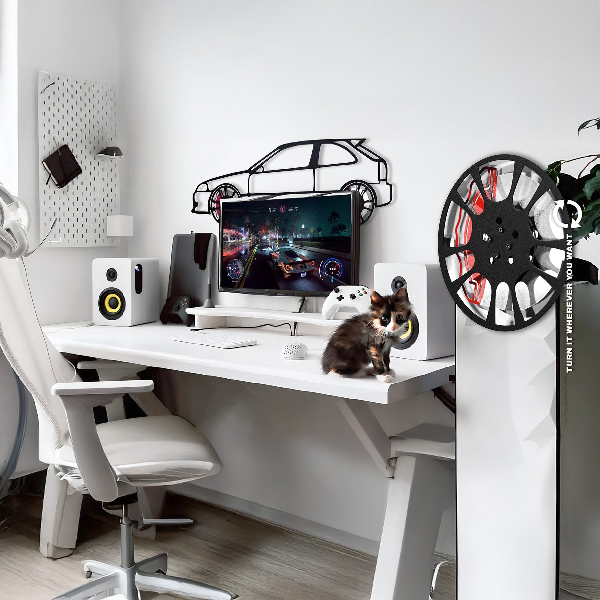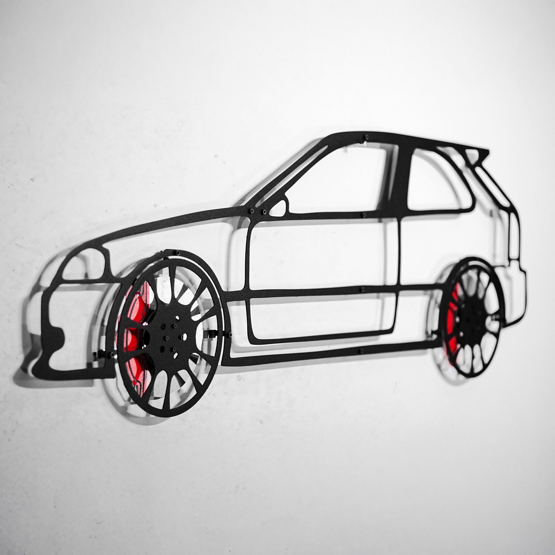 Laser-cut from 1.5 mm steel and finished in electrostatic powder paint, this piece captures the Civicβs iconic hot hatch lines. And yes β the wheels spin by hand, because tuner cars should never stand still.