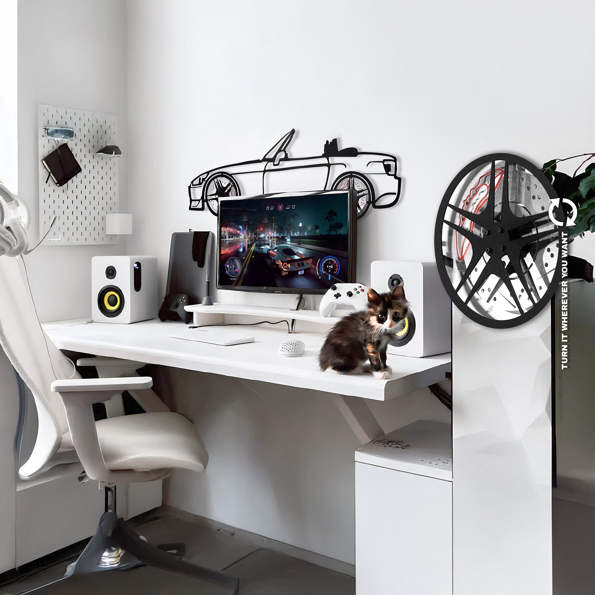 Honda S2000 Wall Art – JDM Steel Silhouette with Spinning Wheels-KAFMEKA029