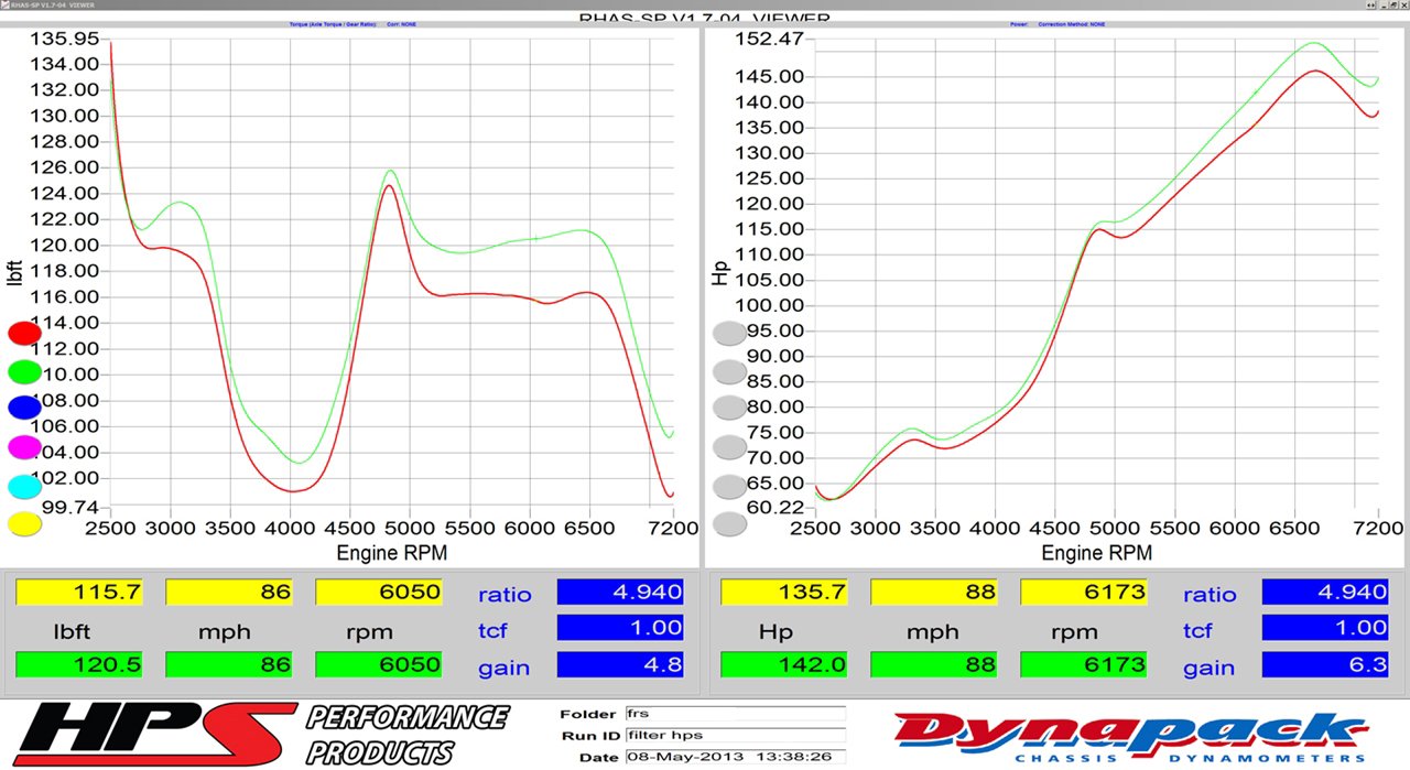 - Delivers dyno proven performance gains - increase horsepower +6.3 whp , torque +4.8 ft/lbs and improve throttle response. Fine-tuned by HPS Performance to deliver the maximum performance output thru the top end power band