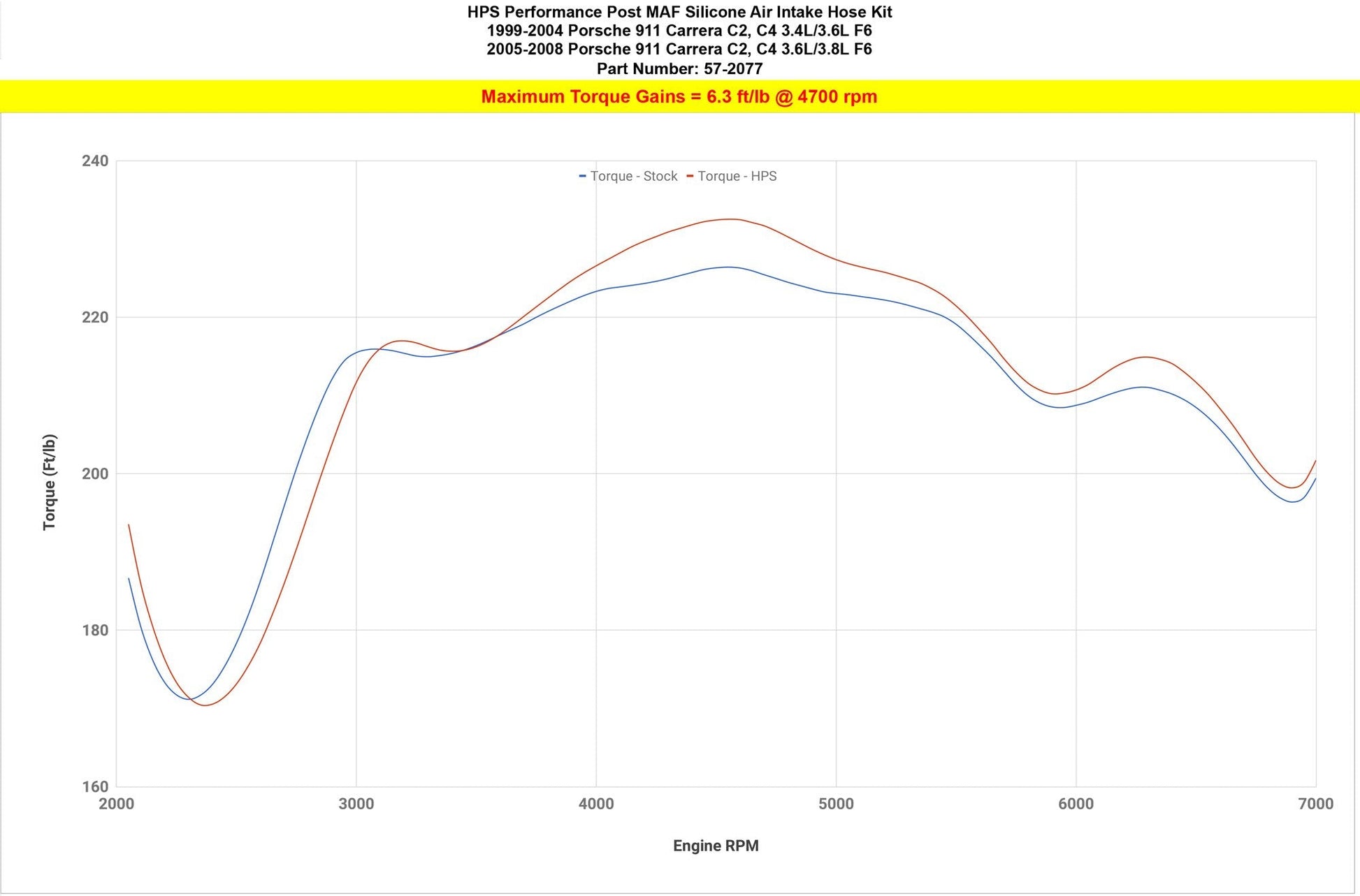 The HPS Performance Silicone Intake Hose for Porsche 996/997.1 is a simple and effective upgrade that can be completed in under 30 minutes. Increase horsepower, torque, and induction sound while reducing clutter in the engine bay. This intake hose has a smooth interior to provide uninterrupted air flow.
