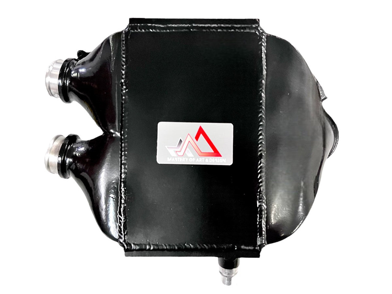 In addition to its performance benefits, the Mad Top Mount Intercooler is also a visual upgrade. Its sleek, black finish and laser-etched plaque add a stylish touch to your engine bay.