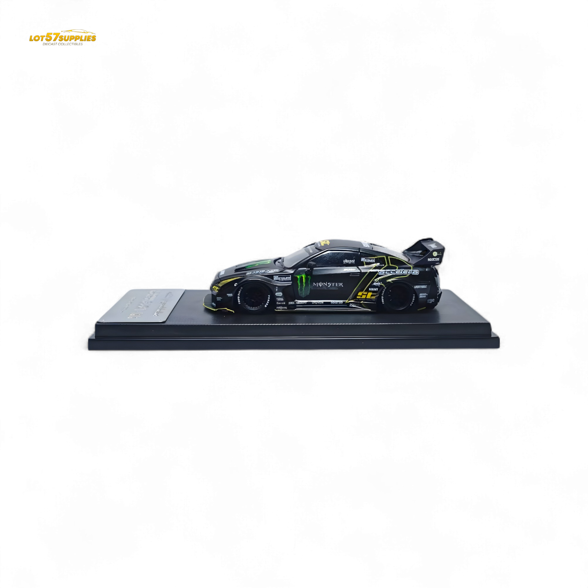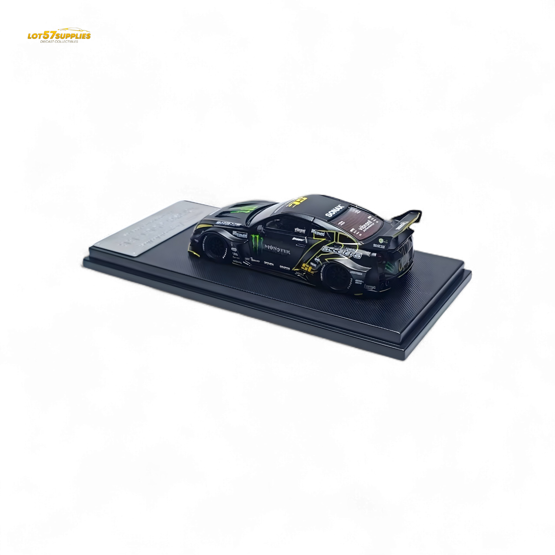 Detailed model of MC 1/64 LB GTR GT in Matte Black Monster finish. This collectible diecast model features intricate design, high-quality materials. A must-have for enthusiasts and collectors.