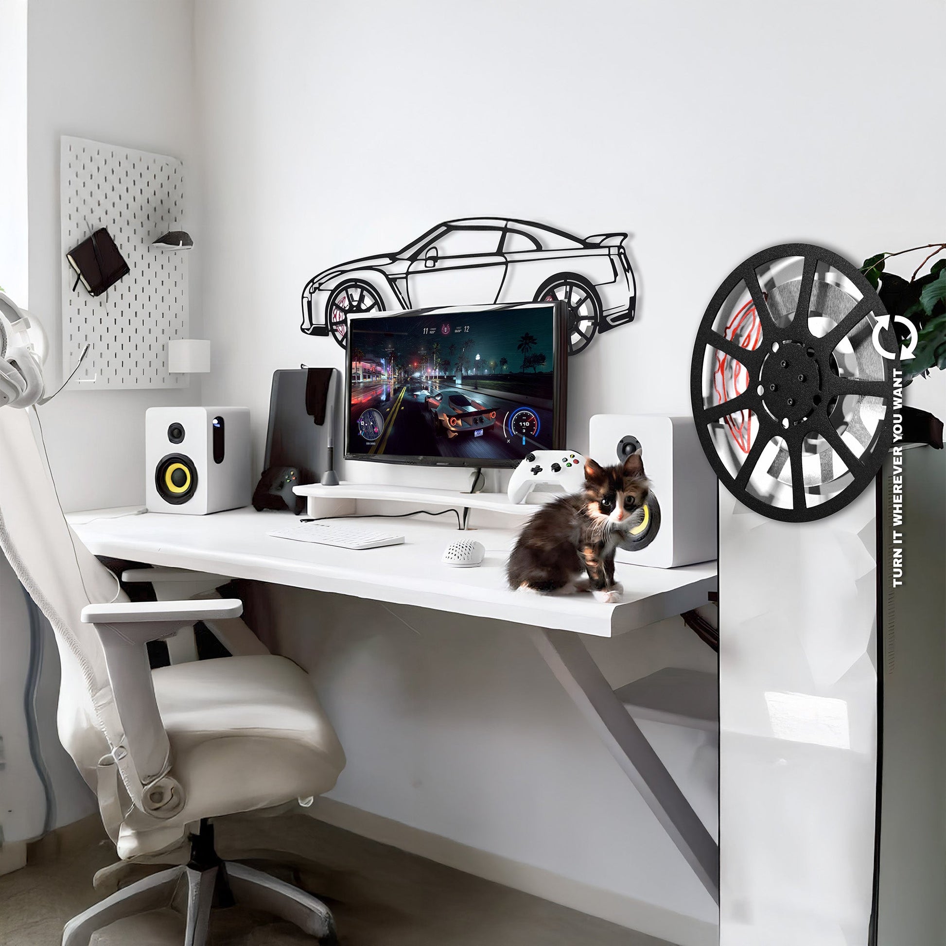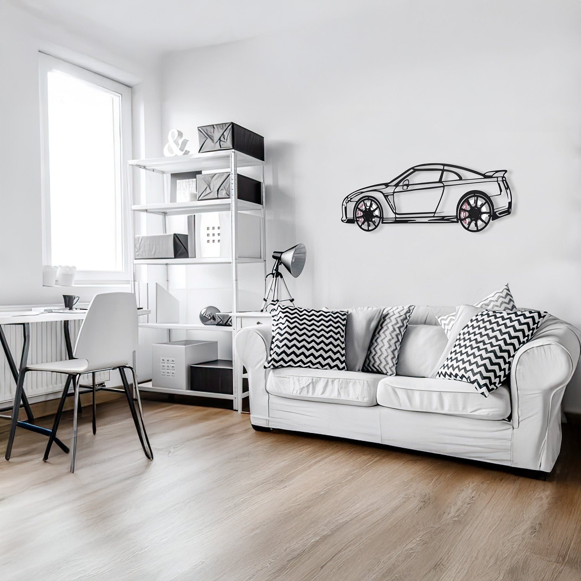 Nissan GT-R R35 Wall Art β JDM Steel Silhouette with Spinning Wheels-KAFMEKA036