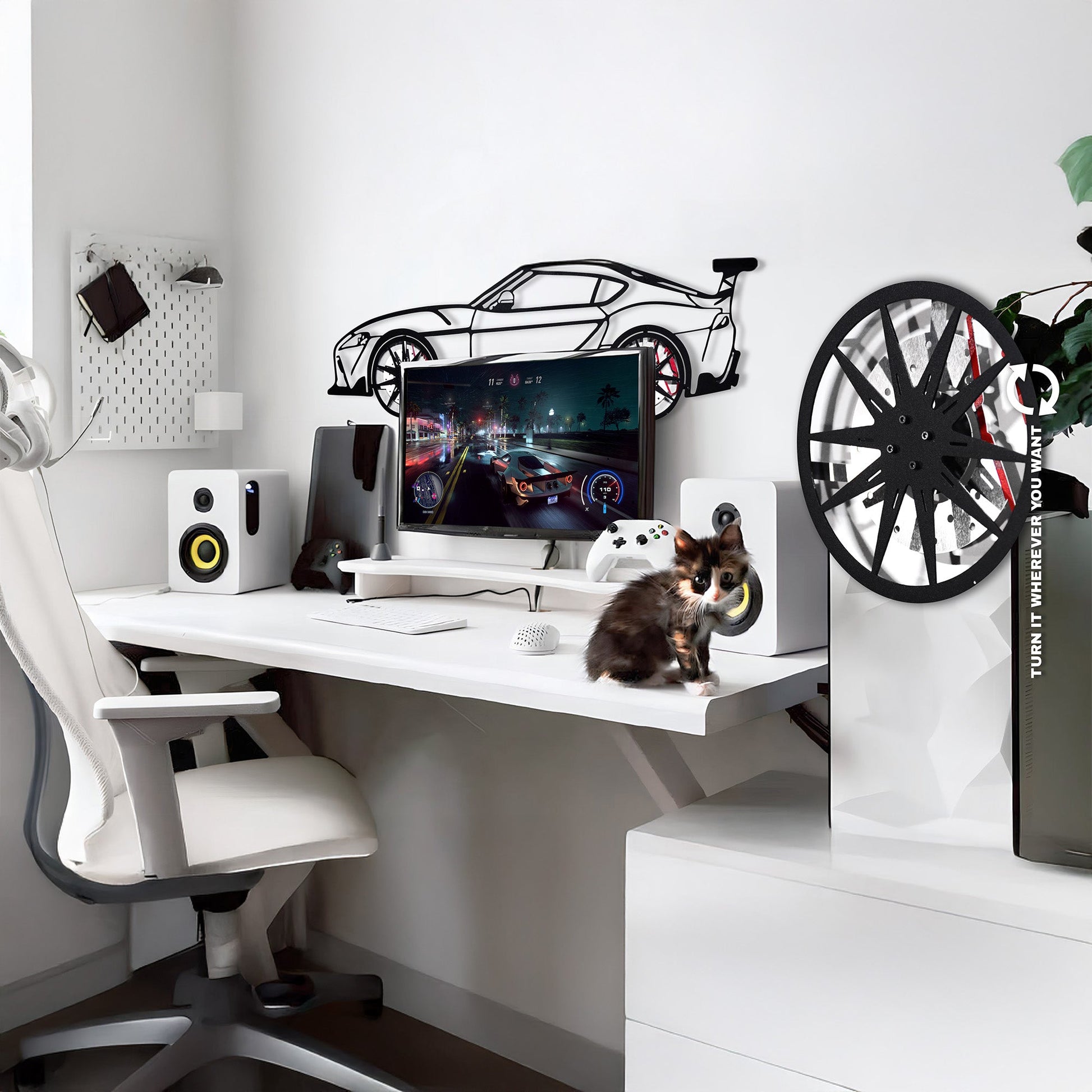 The Toyota Supra MK5 isn’t just a car — it’s the rebirth of an icon. With its muscular stance, bold styling, and JDM heritage, it’s instantly recognizable. Now, it’s transformed into steel silhouette wall art with interactive spinning wheels.