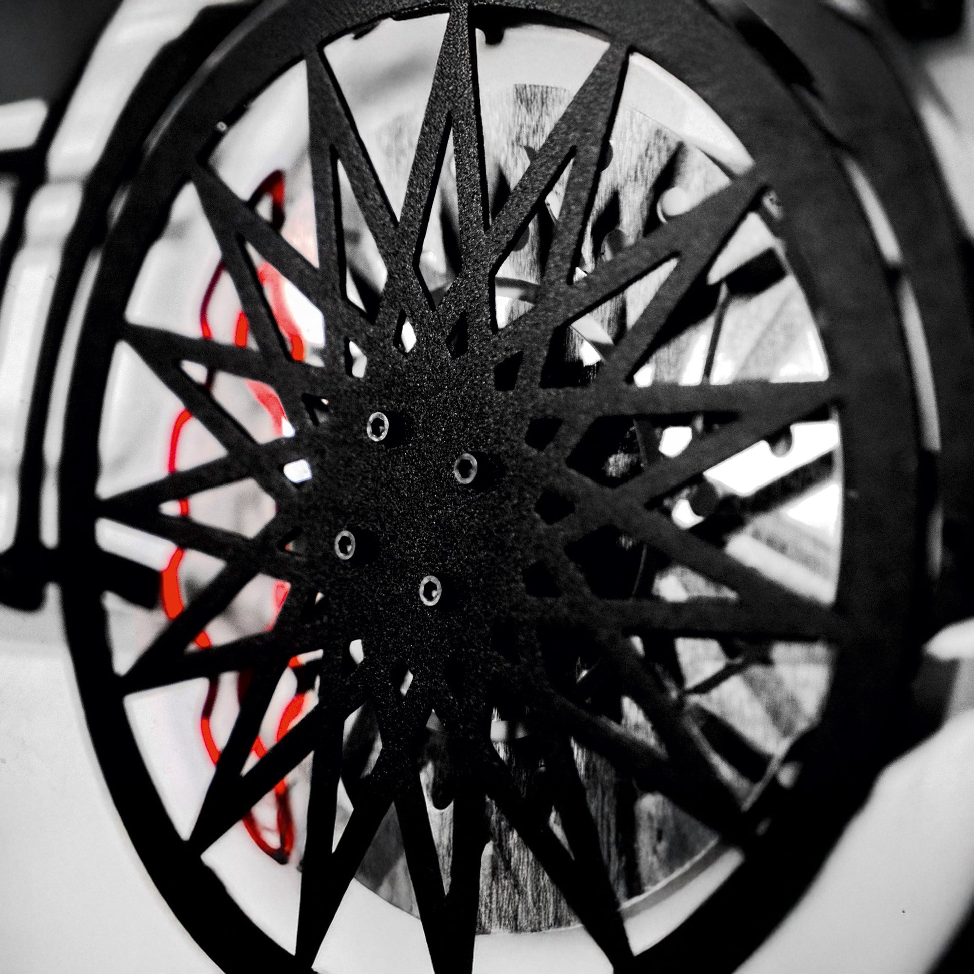 Made from 1.5 mm precision-cut steel and finished with durable electrostatic powder paint, this piece is built to last. The wheels spin by hand, adding an interactive twist to this timeless classic.