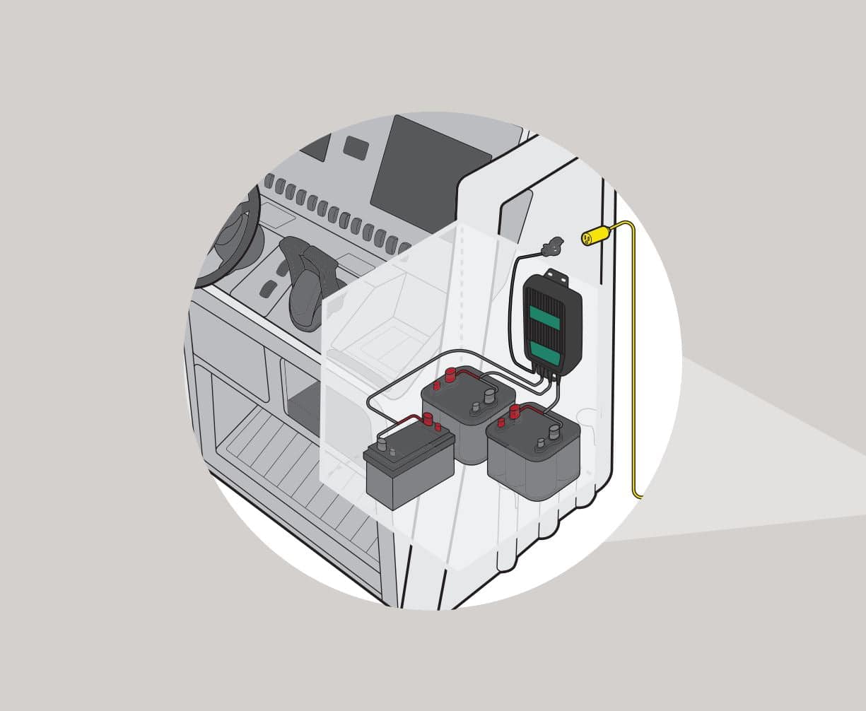 Battery Tender battery chargers are completely automatic and may be left connected to both AC power and to the batteries being charged for long periods of time.